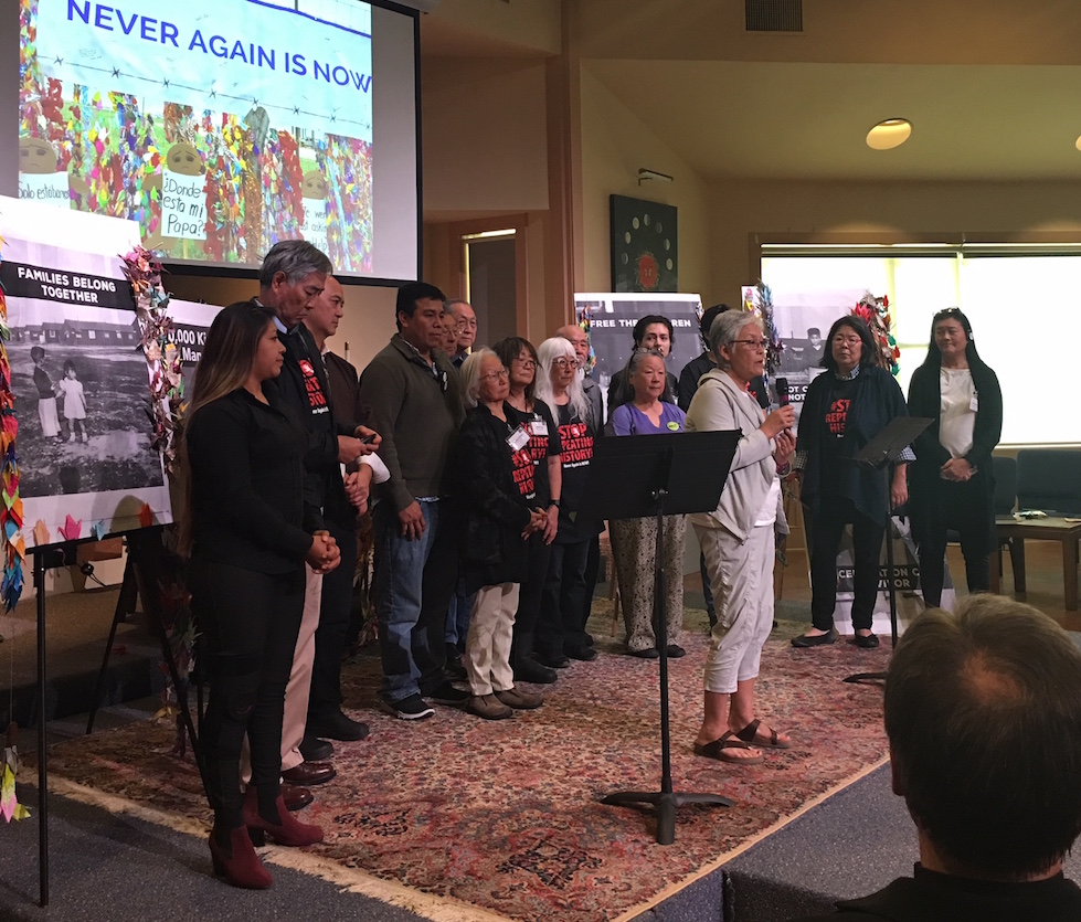 The members of this pilgrimage included adults who had been small children in the internment camps and younger people whose grandparents and other relations were in Crystal City or one of the other camps in desolate areas of the Western U.S. They came to St. Andrew’s after staging a peaceful protest at the South Texas Family Residential Center (sic) in Dilley, Texas – to meet Hilda and Ivan and members of the Austin Sanctuary Network (ASN).