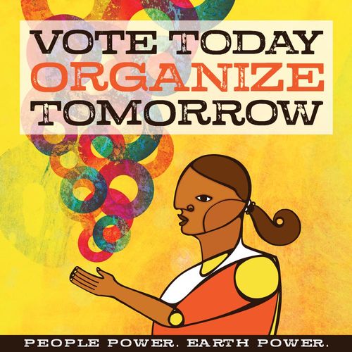 Progressives need to address many, many more issues in the coming months: the “fiscal cliff,” military spending, drone warfare, climate change, and expanding the health care system for example. The key point is to begin to change now. As one wonderful graphic urged on Facebook election day, “Vote Today, Organize Tomorrow.”