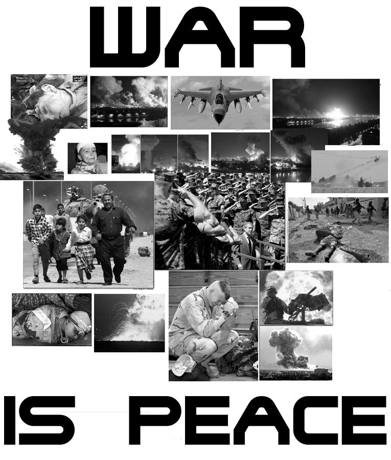 “War is peace” was one of the memorable slogans on the facade of the Ministry of Truth, Minitrue in “Newspeak,” the language invented by George Orwell in 1948 for his dystopian novel 1984. Some 60 years later, a quarter-century after Orwell’s imagined future bit the dust, the phrase is, in a number of ways, eerily applicable to the United States.