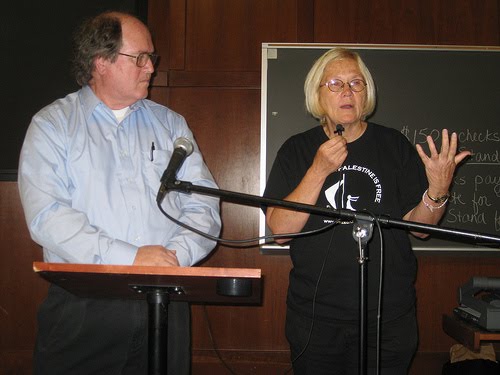 AUSTIN — Two participants in the Gaza Freedom Flotilla, Col. Ann Wright and Joe Meadors, spoke to an Austin audience July 11 as part of a statewide speaking tour. They were part of a six ship flotilla attempting to break the Israeli blockade of Gaza with a delivery of humanitarian supplies. On May 31, Israeli special forces boarded the largest ship, the MV Mavi Marmara, shooting nine passengers to death and injuring more than 40. One U.S. citizen was among the dead.