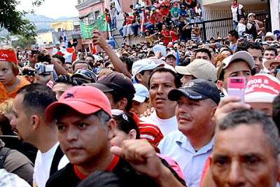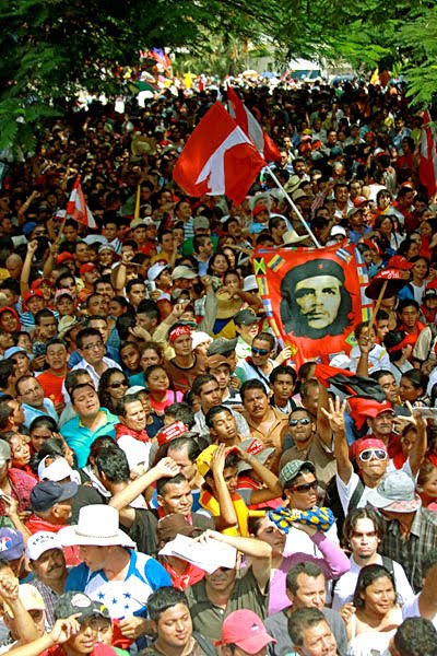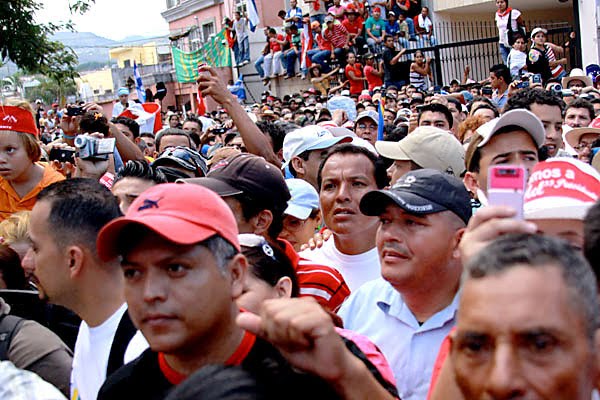 “I speak to you as commander in chief of the armed forces of Honduras, whom the people elected to lead them and who always offered them a warm handshake,” he declared in a message to supporters and, especially, to the soldiers who would soon surround them. “I appeal peacefully to your wisdom: let there be no violence in the streets. The people here with us are unarmed, shouting joyful slogans because this is a day of celebration.”