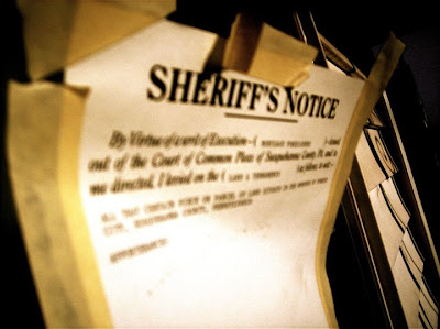 One was missing a pick-up in the driveway; its screen door was left half-open, and there was a letter taped to the window. The Sheriff’s Notice of eviction. Another foreclosure.