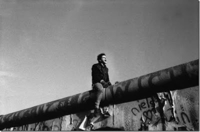 Man straddles Berlin Wall in 1989. Photo from photosfan.com.