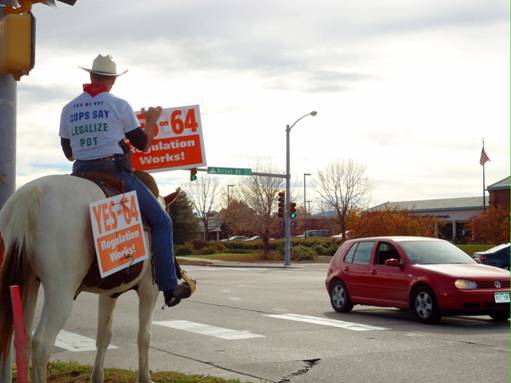 We had come to Colorado to promote their ballot initiative on marijuana: Amendment 64. This proposal would essentially (for those 21 and older) legalize, regulate, and tax the use and sale of marijuana. Its major features included: 1) allowing adults to grow enough for private, non-medicinal use; 2) permitting the legal cultivation of industrial hemp; 3) establishing a system in which marijuana could be taxed and sold through state-regulated retail outlets; 4) allowing employers to maintain their existing policies; 5)and it would not impact in any way the laws surrounding the medical use of cannabis.