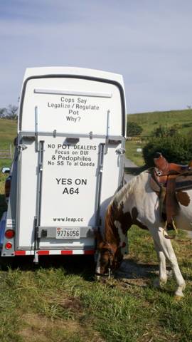 Most recently, Howard and Misty took part in the successful Colorado campaign to legalize cannabis for recreational and industrial purposes there. (The state of Washington also passed a similar law.) Colorado began allowing medical marijuana use in 2000. In this first of a two-part special report to The Rag Blog, Howard writes about his and Misty’s experience promoting Amendment 64 from a personal (and equine) point of view; next week, he’ll write about the significance and likely fallout of the Colorado electorate’s choice. — Mariann Wizard / The Rag Blog