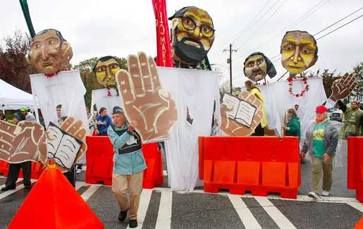 Thousands of human rights activists and torture survivors demonstrated against the School of the Americas at Fr. Benning, Georgia, Nov. 20-22, 2009. Photo from the Columbus Ledger-Enquirer.