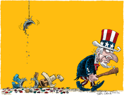 It's a common myth that all the Democratic members of Congress need is some political courage. Sorry about that. They have exactly the same kind and amount of courage the Repugnicans have – the courage to take the banks' and corporations' money, and do exactly as they're told.
