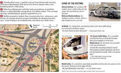 Young children were among the victims and the shooting strained relations between the U.S. and Iraq. Following the shooting, Blackwater became the subject of congressional hearings in Washington and insurgent propaganda videos in Iraq.