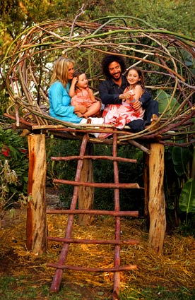 In their minds, they saw a magical outdoor space for their growing family. After six years of the couple’s planting, transplanting, building and tending, visitors can see it too: a wild jungle of blooming Pride of Madeira, cascading white roses, flowering bougainvillea reaching toward the sky. Thriving vegetable gardens are filled with chard, squash, tomatoes, basil and sunflowers, some bursting from simple bales of hay and compost with eye-popping color.