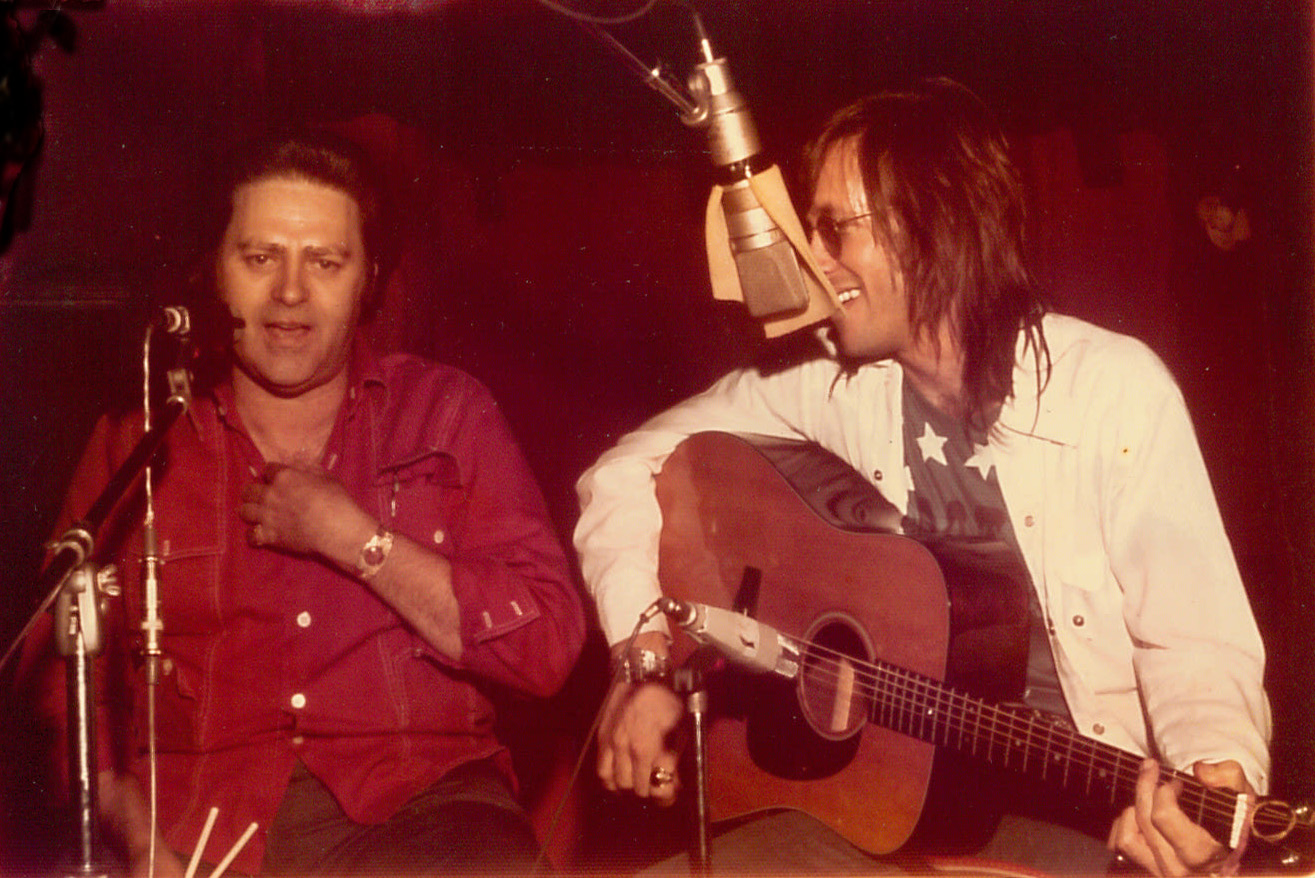 Huey P. Meaux and Doug Sahm at Sugar Hill Studios in Houston, 1974. Photo by Hank Lam.