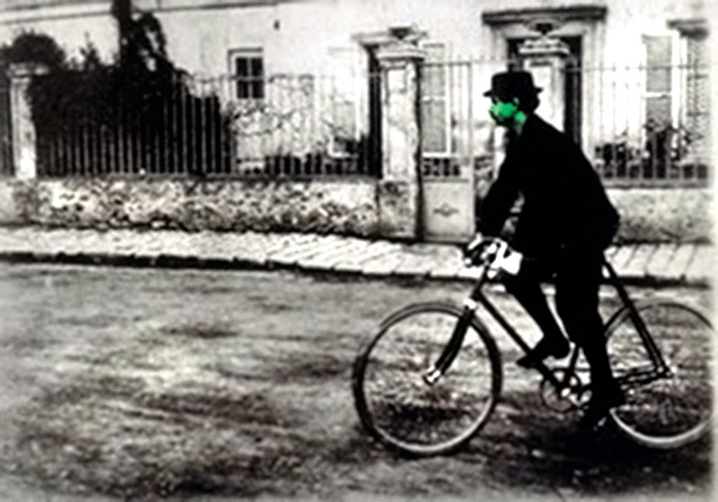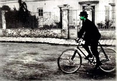 When Dada was in his teens, he had the shocking experience of being run over by a green man standing on the handlebars of a speeding bicycle; the resulting broken pelvis and psychological damage would cause Dada to walk with a limp and talk with a pronounced stutter.