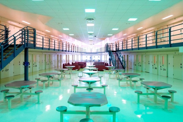 We no longer are allowed to see the Hole or what prison officials call the Segregation Unit, since men are there disciplined to solitary confinement which my students know Supreme Court Justice Anthony Kennedy recently said can drive men mad. Therefore, the highlight of the tour is always taking them into what is called a “pod.” A pod is the relatively new term in prison construction where prisoners can live in a contained unit. These pods are somewhat stale and robot-like but they allow the COs the ability to see what is going on.
