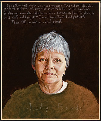 Forced by an encroaching strip mine to move from her family’s ancestral land, Bonds spent the next decade as a full-time crusader (and coal miner’s daughter) to bring her grandson’s message of central Appalachia’s role as a national sacrifice zone from the devastating impact of mountaintop removal strip mining to millions of Americans across the country.
