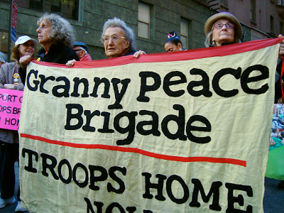 For now, I will be cautiously optimistic. Dare I say “Mission Accomplished” in Iraq, with reservations, as far as the peace grannies are concerned?