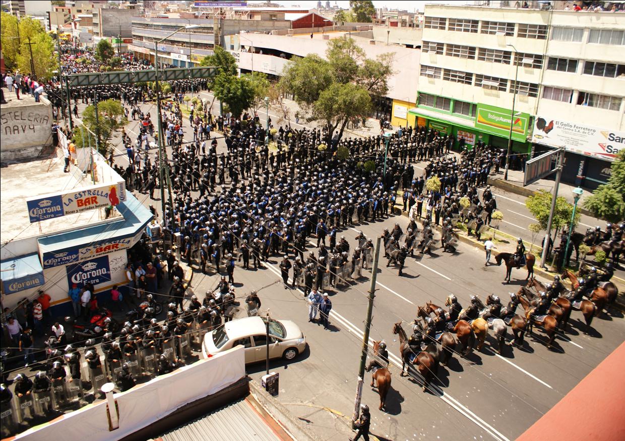 There was a march of about 50,000 teachers, with numbers disproportionately from Oaxaca. Since there were thousands of police and soldiers awaiting them at the Congress building, they began marching instead toward the presidential palace Less than halfway, the rank and file (especially, again, those from Oaxaca) — after receiving news that the Congress had already begun meeting to pass a remaining set of “reforms” that day — demanded to go to the Congress.