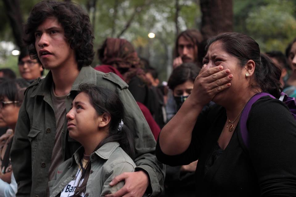Families of the missing and murdered students protest in Mexico City Wednesday, October 15. Photo by Joel Hernández / Somoselmedio.org.