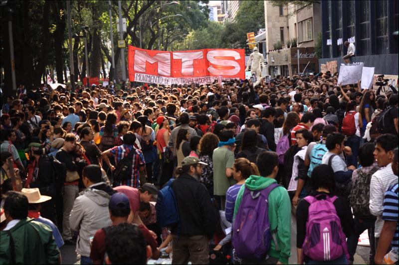Thousands of striking university students and representatives of social organizations demonstrate in Mexico City, Wednesday, October 14, 2014. Photo by Mario Marlo / Somoselmedio.org
