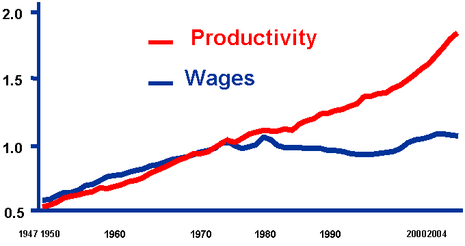 Now, the US has increased its productivity very substantially since 1970, but working Americans have captured very little of the resulting extra wealth. It has been hogged by the rich. William Domhoff notes, “Although [by 2004] overall income had grown by 27% since 1979, 33% of the gains went to the top 1%.” Silver’s graph is eloquent.
