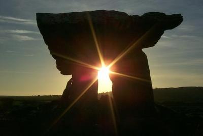 Stranding Stones (Dolmens) can be an important feature of your decorating. You may choose to arrange a miniature Wheel of Life with tall pointy rocks as the spokes of the wheel as a centerpiece; you may choose to create a larger Wheel in your backyard. In either case, it will be good to orient the placement of the dolmens with a compass so that the Solstice dolmens line up with North and South, the Equinox dolmens line up with East and West, and the cross-quarter dolmens are placed at the mid-points between North and East, East and South, South and West, and West and North. You may choose to honor the Solstice dolmans with a chant. Here is a suggestion: