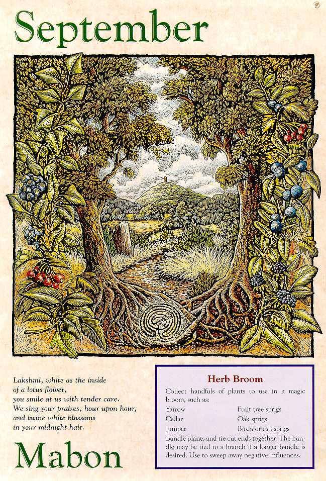 Monday, September 22, 2008 is Mabon, the Fall Equinox. Lady Moon moves from her third quarter in Gemini to her fourth quarter in Cancer, prompting the centered energy of this water sign to reinforce the balancing energies of Lord Sun’s Libra. This is a festival about abundance, as well as balance, as its alternative names of Second Harvest, Harvest Home, and Cornucopia indicate. Part of enjoying abundance is sharing, so encourage your guests to take some of the leftovers home. The giving and accepting of abundance promotes more abundance for both the giver and the receiver.