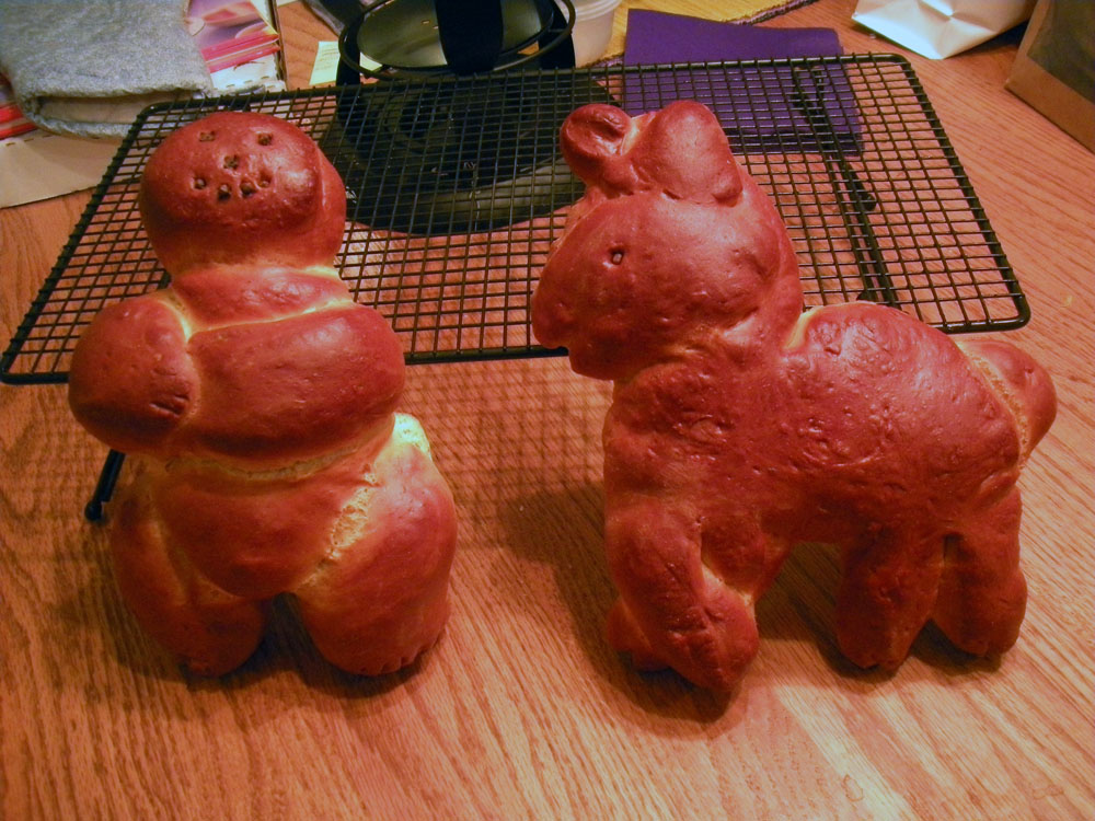 Bread must be the center of the menu: whether wheat, rye, or corn, there must be bread. One way to incorporate both grain and sharing is to bake a loaf of bread in the shape of a man. Before beginning your feast, let each guest tear off a piece of the bread man and feed it to the person sitting to the right while saying “may you never go hungry” or some similar sentiment.