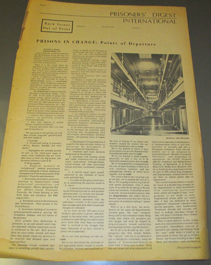 It was in this atmosphere that Joe’s idea began to take shape for Prisoners’ Digest International, a newspaper with two purposes: to provide prisoners with a voice that prison authorities could not silence and to establish lines of communication between prisoners and people in the free world.