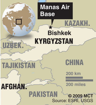 The air base, just outside the capital of Bishkek, is an integral part of the supply chain of soldiers and equipment to Afghanistan, something made more urgent by President Barack Obama’s plans to increase U.S. forces there by up to 30,000 this year.
