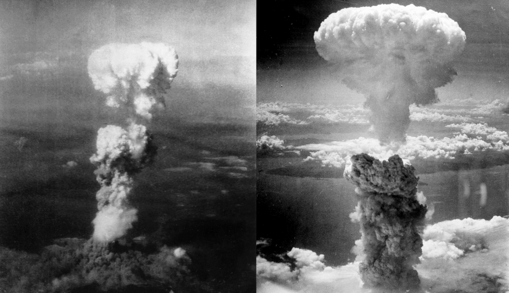 The bombings of Hiroshima, left, and Nagasaki. Photos in the public domain.