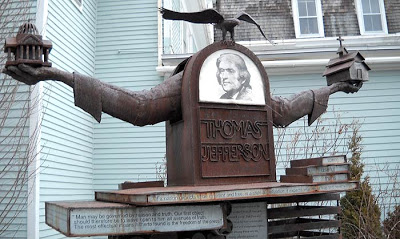 Thomas Jefferson and the separation of church and state. Sculpture outside the Northshire Bookstore, Manchester, Vermont. Image from Artsology.