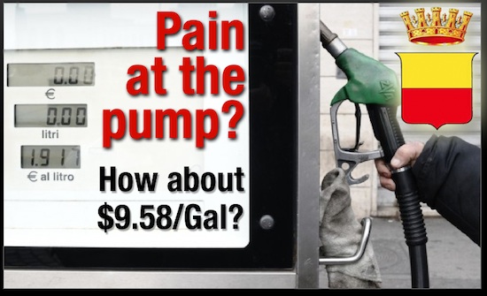 I looked up the cost of a gallon of gas across Europe in March 11, 2012 when Naples hit the $9.58 a gallon record: