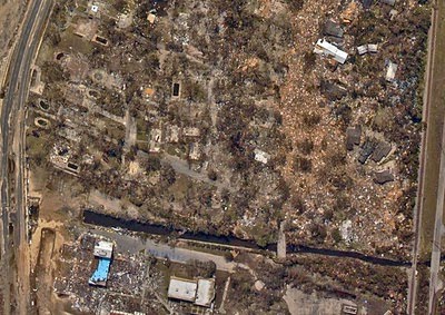 The photo above is not of the magnitude 7.3 earthquake damage in Haiti. It is a NOAA photo of my hometown on the Mississippi gulf coast taken just after hurricane Katrina slammed ashore almost five years ago pushing a 30 foot storm surge fron the Gulf of Mexico over our coastal communities. The tidal surge pushed back up into inland bays, rivers and bayous forcing water into houses up to their ceilings just a few blocks from my home. I was grateful to have only lost a side roof.
