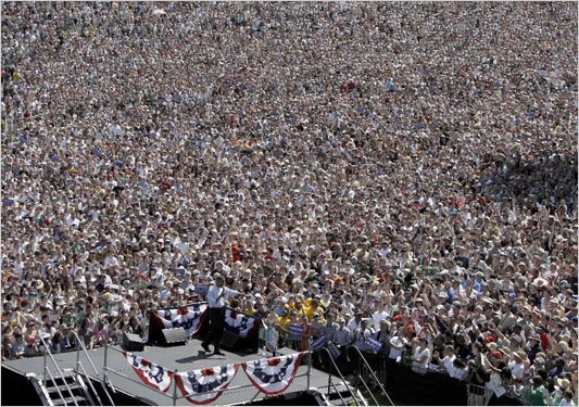 “Wow, wow, wow,” Obama said as he surveyed the audience. “We have had a lot of rallies. This is the most spectacular setting, the most spectacular crowd we have had this entire campaign.” (AP)