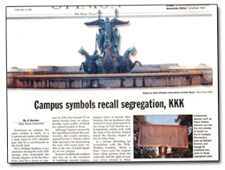 Even the buildings reflect a racist past. In 2010, after publication of a history book by Tom Russell, a former UT Law School professor, the University, after some deliberation, changed the name of a dorm memorializing William Stuart Simkins, a Klan leader and Law School professor in the early 1900s. UT administrators named the residence hall just after the 1954 Supreme Court decision outlawed segregated schools.
