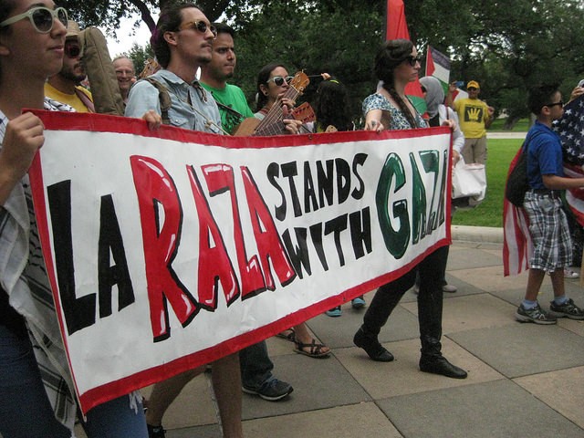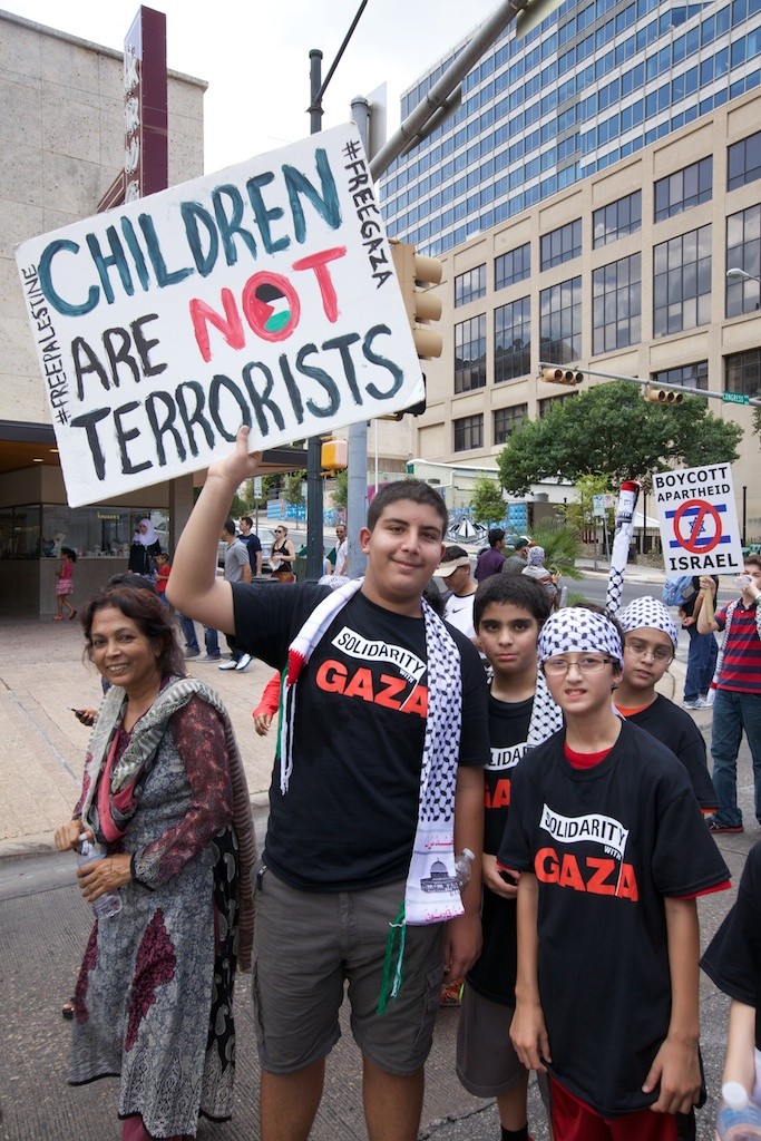 The Austin sponsors for the rally and march included the Interfaith Community for Palestinian Rights (ICPR), the Palestine Solidarity Committee (University of Texas at Austin), the International Socialist Organization (ISO), and the Austin chapter of the Muslim American Society.