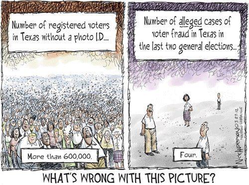 - the Texas scheme of voter ID is the most stringent in the country, not permitting college IDs and veterans’ IDs, as other states allow;