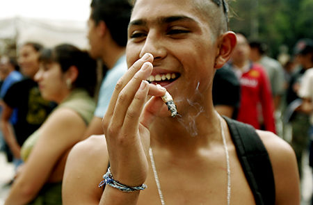 Pot smoker in Mexico City. Mexicans consume an estimated 342 tons of marijuana a year. Photo by Castillo / AP.