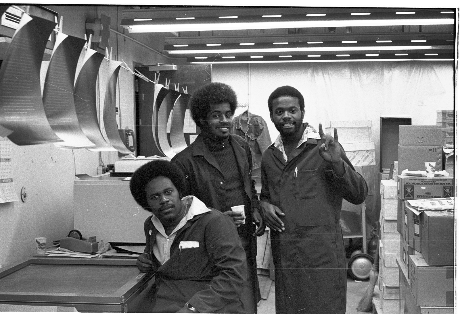 South Water Street Market, Chicago 1976. Above: Members of the Greater Illinois Peoples’ Coop. Below: Salesmen watched over by lion on the wall.