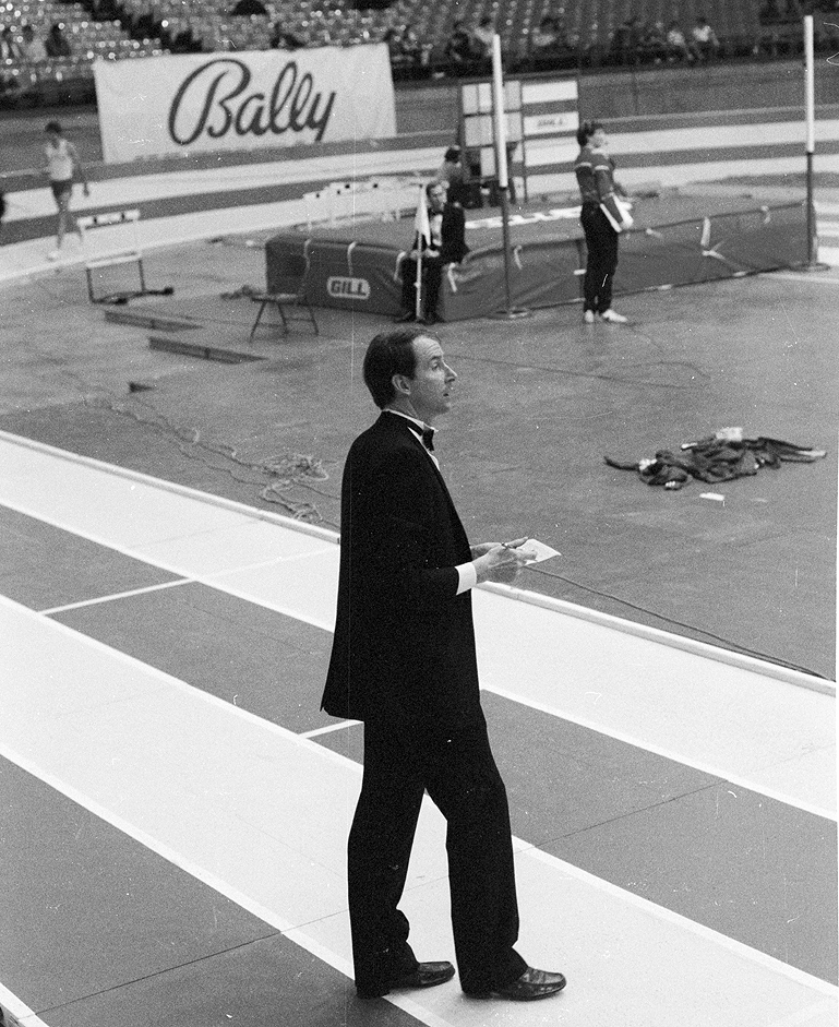 Tom was starting to get into the world of producing big-time running events, traveling far and wide dealing with personnel and equipment for events likes the Chicago Marathon and Hawaii’s Ironman. The performances that stood out for me that day were those of the juiced-up East Germans, the speedy Irishman Eamonn Coghlan winning the mile, and the real cool high jumper — soon to be TV commentator — Dwight Stones fouling out. And Cooney, the master of ceremonies decked out in a tuxedo, was the man running the show.