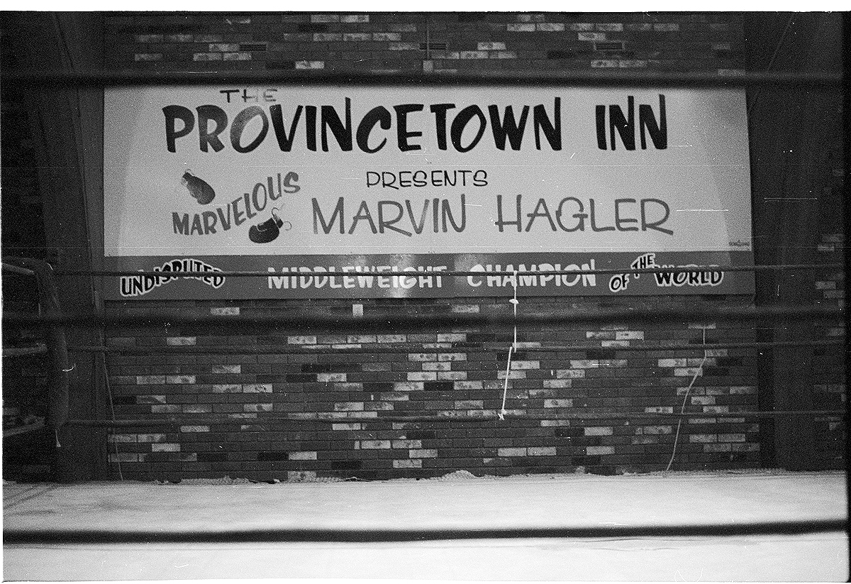 We checked in to the Provincetown Inn; to my surprise and joy I read a sign stating “The Provincetown Inn is Presenting Marvelous Marvin Hagler, Undisputed Middleweight Champion of the World.” Hagler called the Provincetown training camp his “prison,” as he worked out in the Inn’s minimally enclosed (and closed for the winter) pool and patio area. Marvelous Marvin was beautiful to watch, moving around the ring sparring with his cool-looking Latino trainer guy.