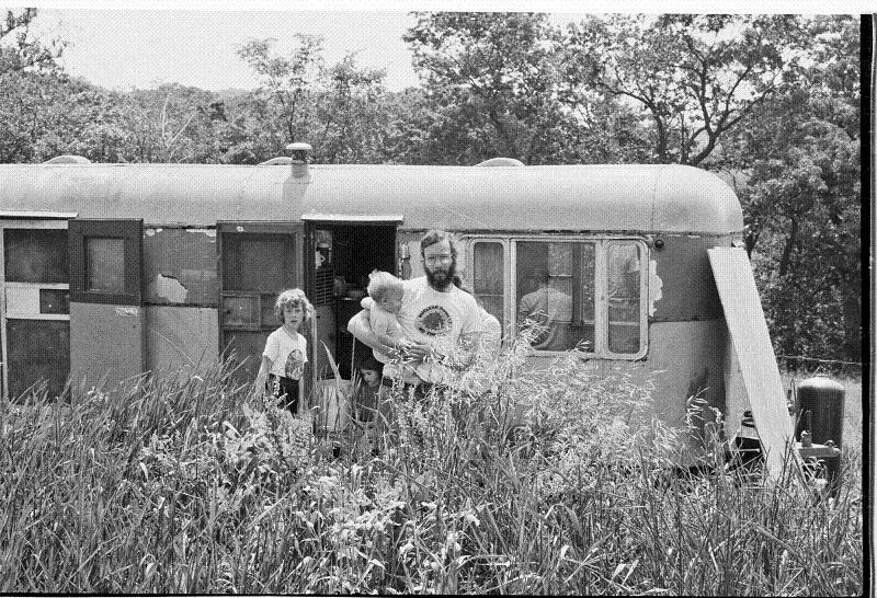 Lester had moved “back to the land” with his family, living in a beat-up trailer while building a semi-circular stone house in a field on the Karma Farm in New Lisbon, Wisconsin. I visited regularly and when The Heartland Journal began, a regular ritual evolved. Within a day or so post-printing I would drive Lester back to the farm. We dropped papers along the way and dropped hundreds in bundles at food coops in Madison, and always left a few with a young waitress who regularly served us coffee at a truck stop in Mauston.