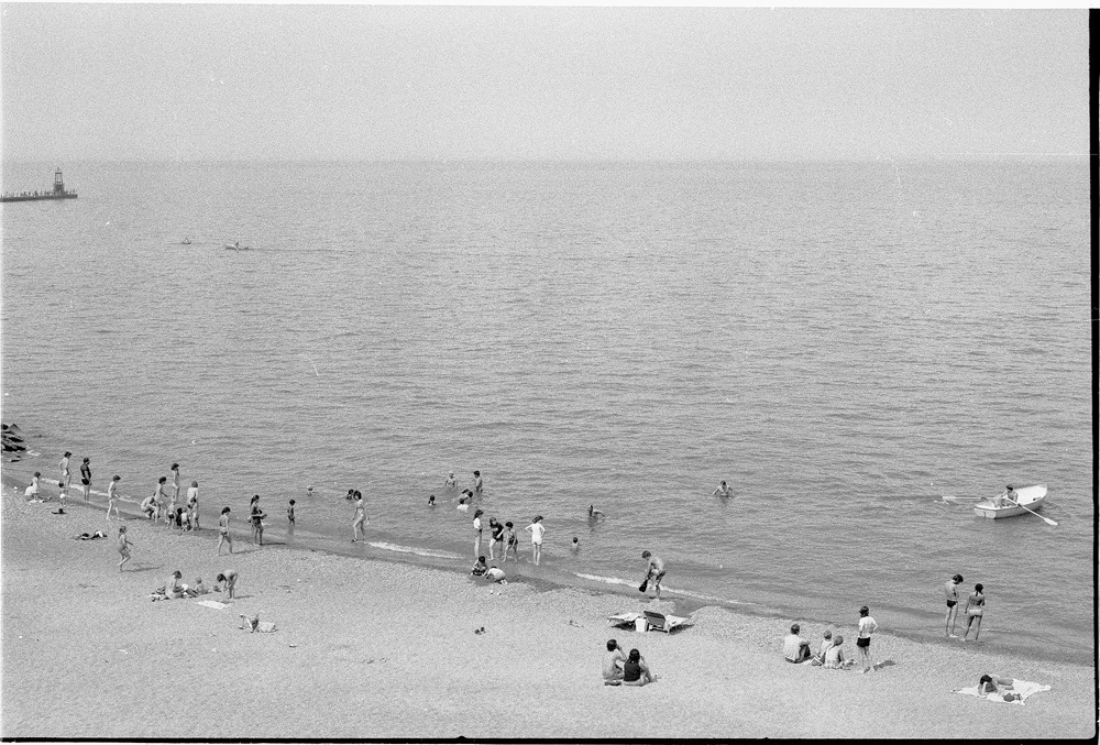 Through those windows I observed people and nature: the shifting colors of the landscape, the hues and shades of the sky and lake, motions of the waves, patterns and flow of the ice, the cop on the Loyola University beat religiously giving out parking tickets, people playing (and making out) in the park, on the beach, and in the water. During the heat of the summer an older couple arrived each morning to swim from the beach to the pier and back. They inspired me to begin swimming that same route, often passing them going or coming.