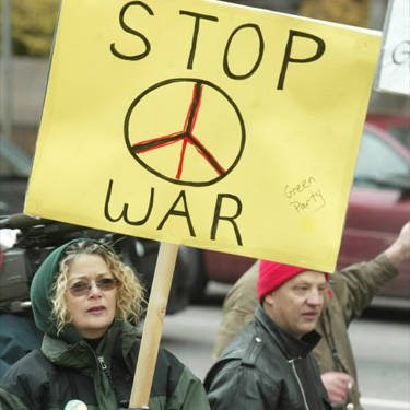 Earlier in the day, Jean Stevens of Manhattan, a spokeswoman for peace group Code Pink, said the anti-war protesters were “here to bring our message to both candidates and both parties to stop the war.” — Newsday.