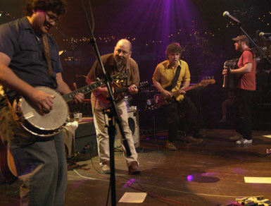 The Gourds came out this fall with a highly praised and historically resonant Vanguard release, Old Mad Joy. They have four fine singers and songwriters and an astonishing facility with an array of instruments that include acoustic and bass and electric guitar, mandolin, accordion, violin, piano and organ, and drums. They blend strains and echoes of gospel, rock, blues, country, bluegrass, Cajun, even barbershop harmony — sometimes all of that blended in one song.