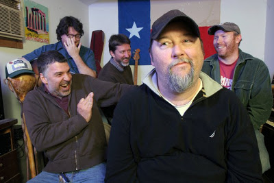 They rehearse now in an un-airconditioned former nursing home in South Austin; the room they utilize, once the kitchen, has no windows, much musicians’ equipment, and a homey pleasant clutter — one wall sports a bumper sticker that reads, “My honors student has a career in the service industry.” They get started by 11 a.m. and work no later than 1:30, and then they scatter to pick up their kids after school.