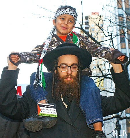 Uh, guys, just because someone opposes something you also oppose does not make them your friend. Case in point: Naturei Karta, the super-Orthodox group that opposes the state of Israel. Why do they oppose it? Oh, because it’s not the way things used to be. Anything non-canonical is forbidden, and that includes rights for women, by the way. I am an anti-Zionist Jew, and I vehemently object to this racist, bigoted, anti-woman, anti-gay, anti-human rights organization being trumpeted with a photo as though they are the embodiment of all that is good. They oppose the state of Israel. Great, but let’s not make them out to be exemplary, because they’re not.