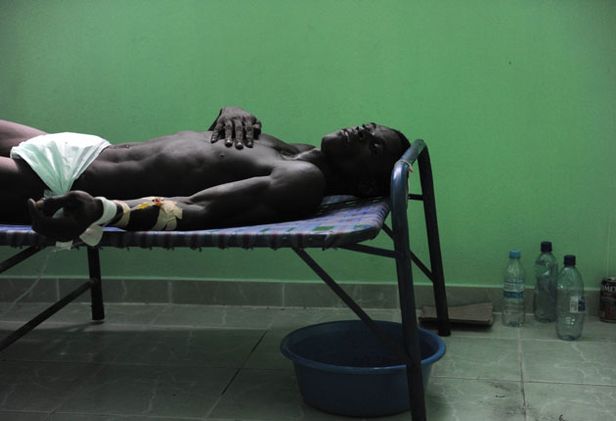 Jacklin Anore, 24, a cholera patient at the Cuban-run Nicolas Armand hospital in Arcahaie, north of Port-au-Prince. Photo from APF / Getty Images.
