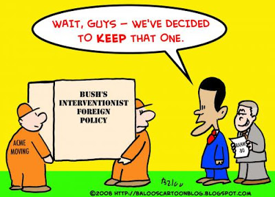 While the political philosophy articulated or implied by President Obama is far from that of the neo-conservatives, these concrete policies that he has embraced do in fact resemble Reagan/Bush era policies. The language the current president uses to defend these policies does not have the apocalyptic and zealous quality that his predecessors utilized, but the consequences for targets of war and U.S. military personnel are the same.