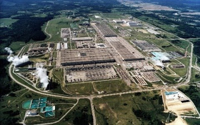 Using the gargantuan corpse of the shuttered Portsmouth-Piketon uranium enrichment plant as his backdrop, U.S. Senator George Voinovich (R-OH) punctuated his enthusiastic endorsement the new nuke by proclaiming that, with his support, the US government has paid thousands of Ohio workers hundreds of millions of dollars in compensation for the health damage they suffered from being irradiated while working there.