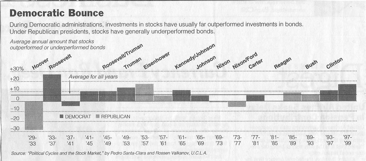 (For the eye-popping chart of the S&P’s performance under each of the presidents from Hoover through Bush 43, visit here.)