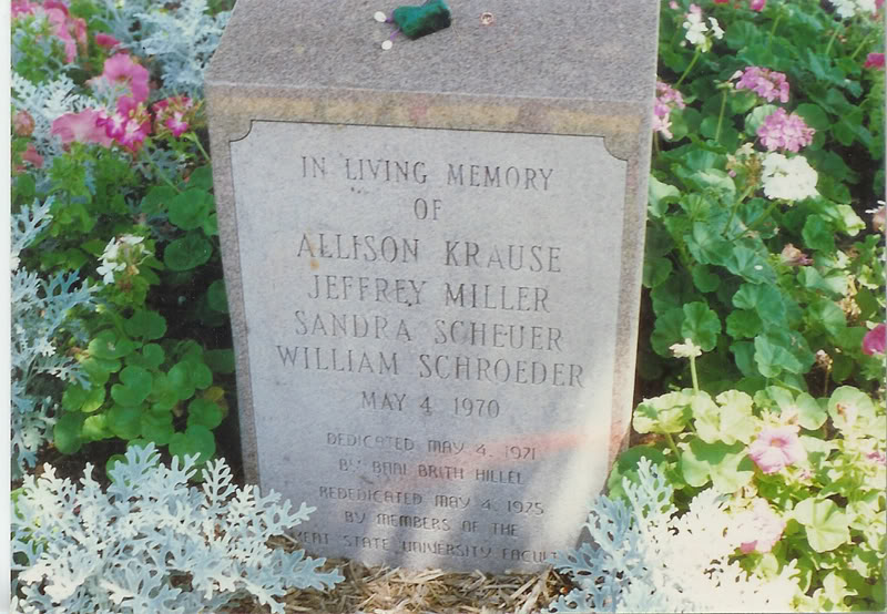 Plus nine wounded. Sixty-seven shots — dum-dum bullets that exploded upon impact — had been fired in 13 seconds. This incident on May 4, 1970 resulted in the first general student strike in U.S. history, encompassing over 400 campuses.